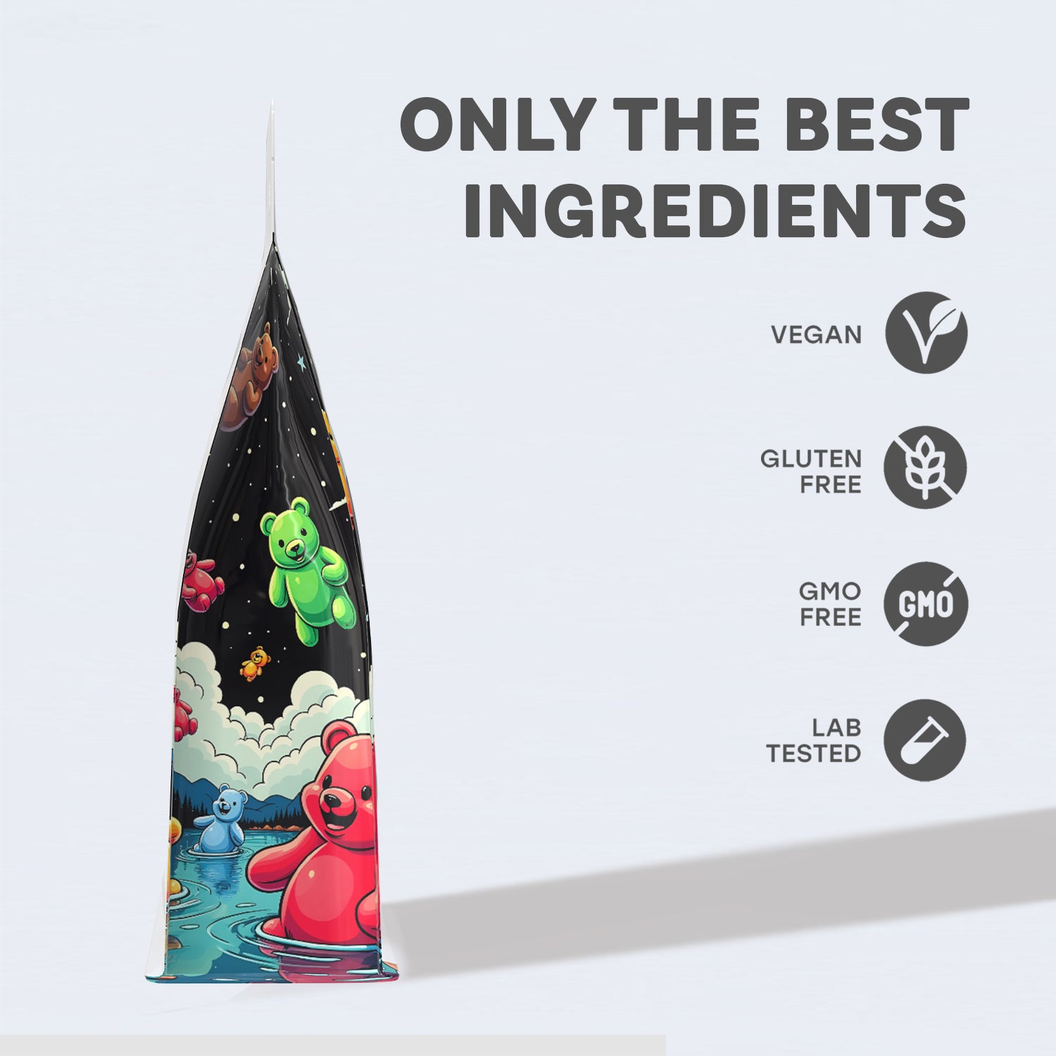Formulated using broad spectrum CBD extracted through clean CO₂ methods, Mixed Fruit Bears remain completely THC-free. Every pouch is UK made, independently lab tested, and fully compliant for consistent quality and peace of mind.