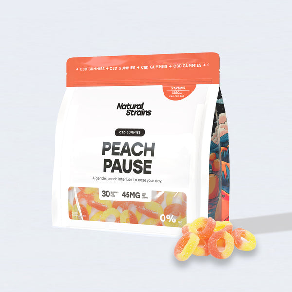 Peach Pause Gummies are designed to bring a sense of balance and clarity, combining a fresh peach flavour with broad spectrum CBD in a format that feels light, refreshing, and easy to enjoy.