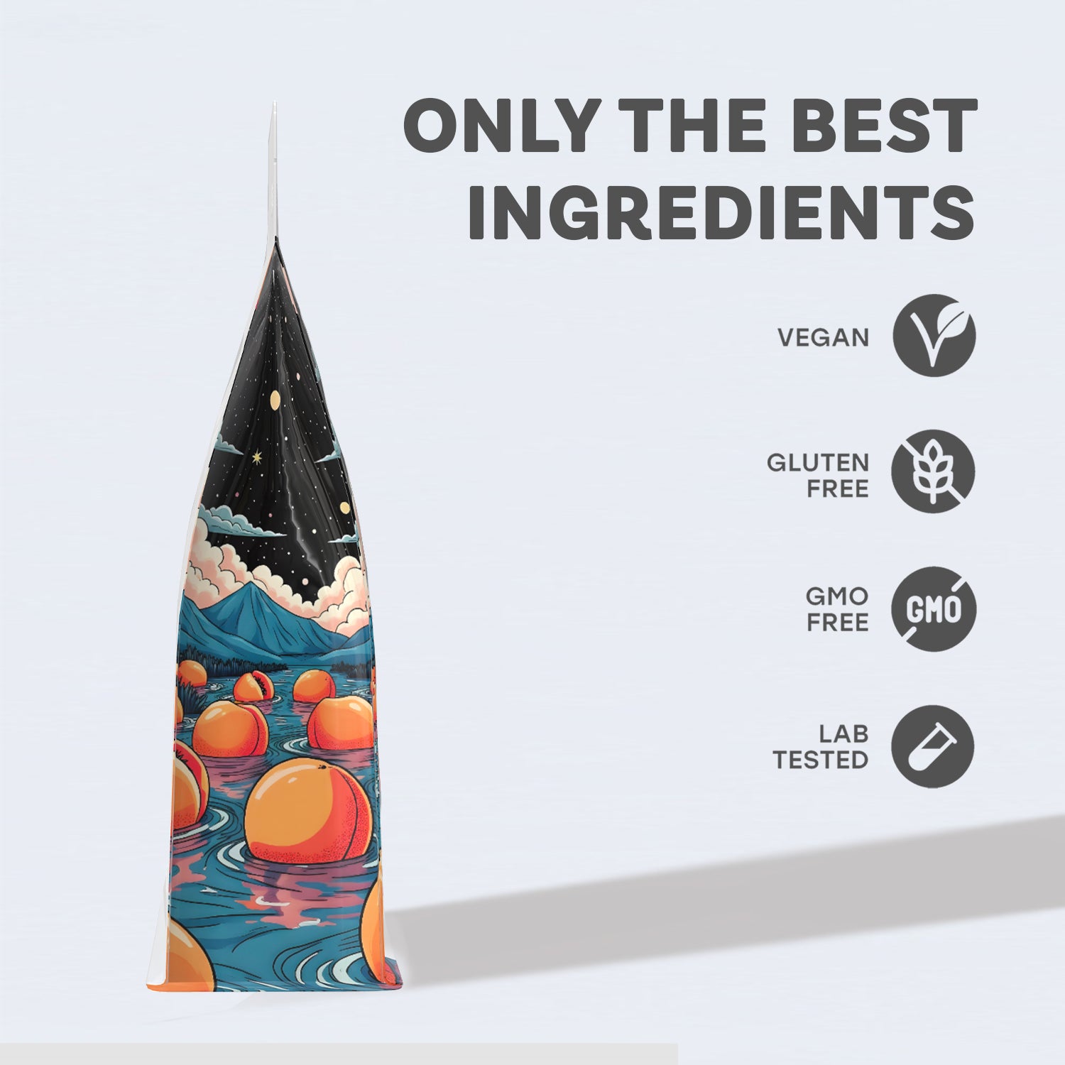 Bright, smooth, and subtly sweet, Peach Pause fits naturally into daytime routines when you want to feel present, clear-headed, and gently supported. Whether you’re easing into the morning, resetting during a busy afternoon, or finding focus without feeling overstimulated, these gummies help you pause and rebalance.