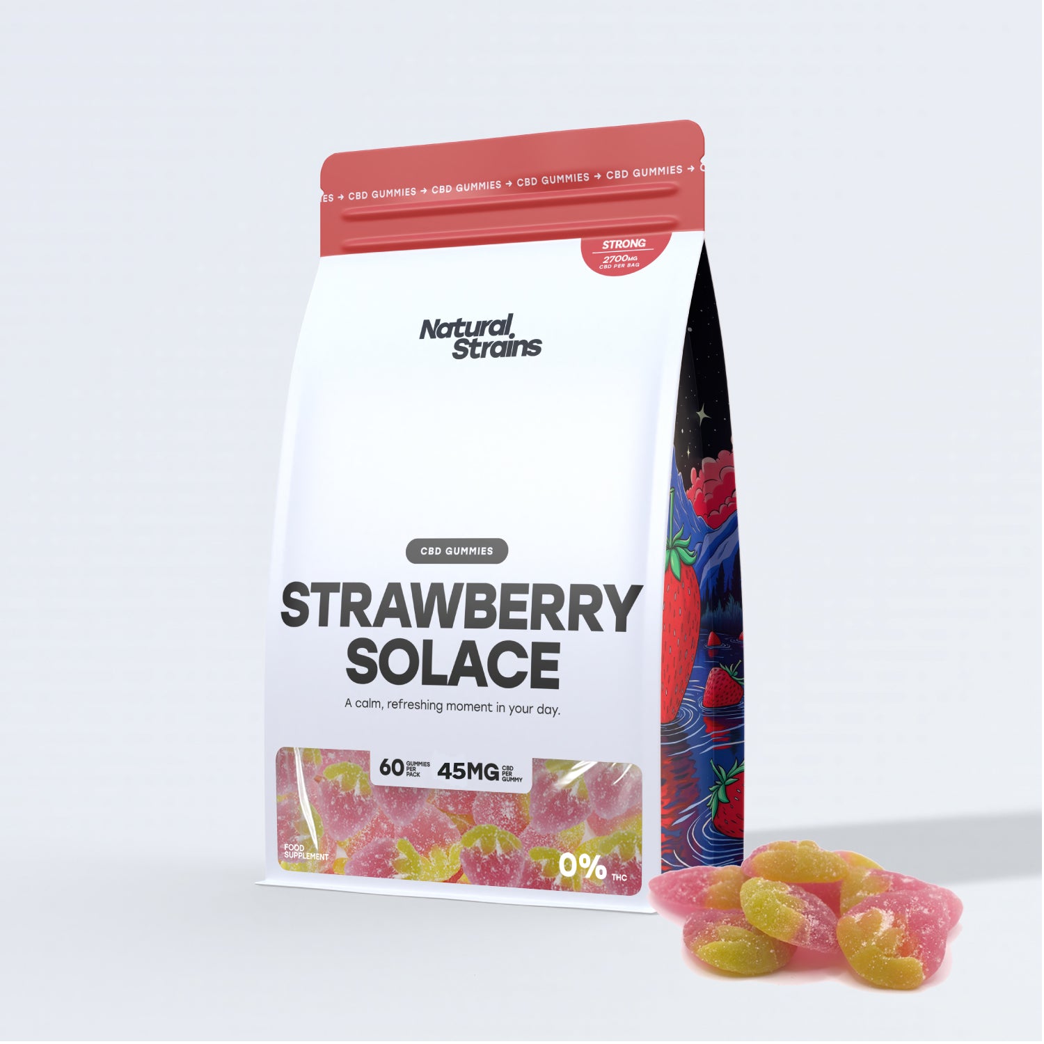 Strawberry Solace Gummies are designed to bring gentle reassurance and emotional balance, combining a soft strawberry flavour with broad spectrum CBD in an easy, enjoyable format that feels comforting rather than clinical.