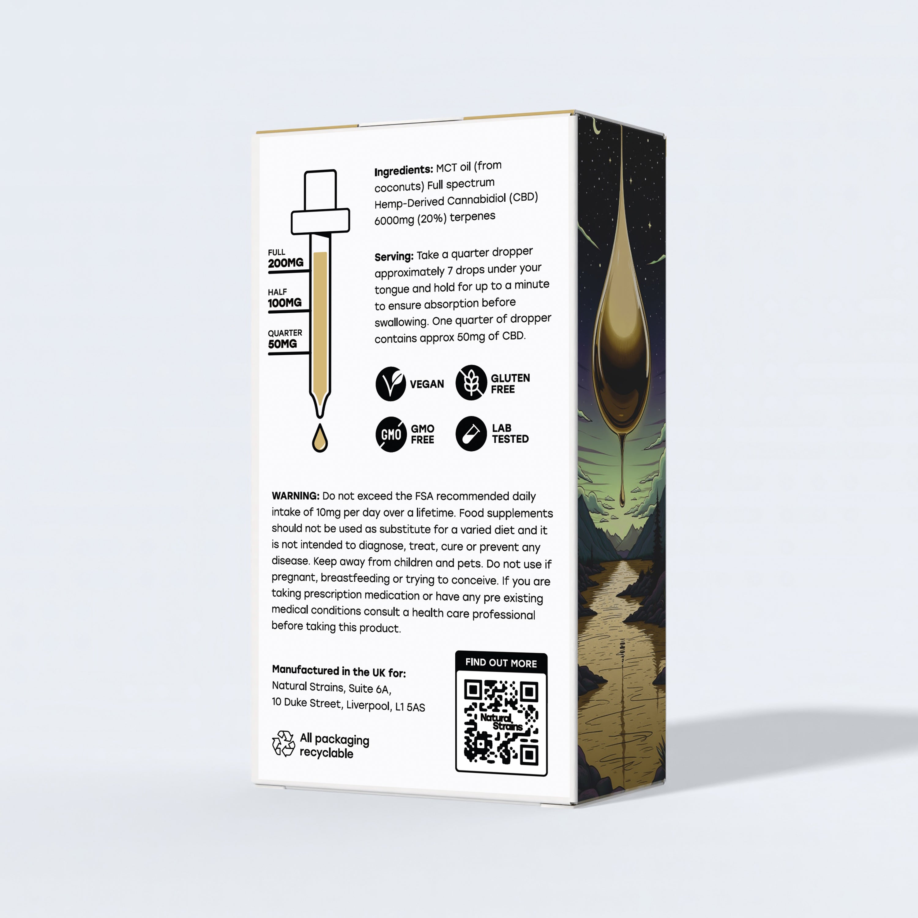 Our most powerful CBD oil, designed for deep relaxation and complete switch-off — ideal for experienced users looking to fully unwind at the end of the day.