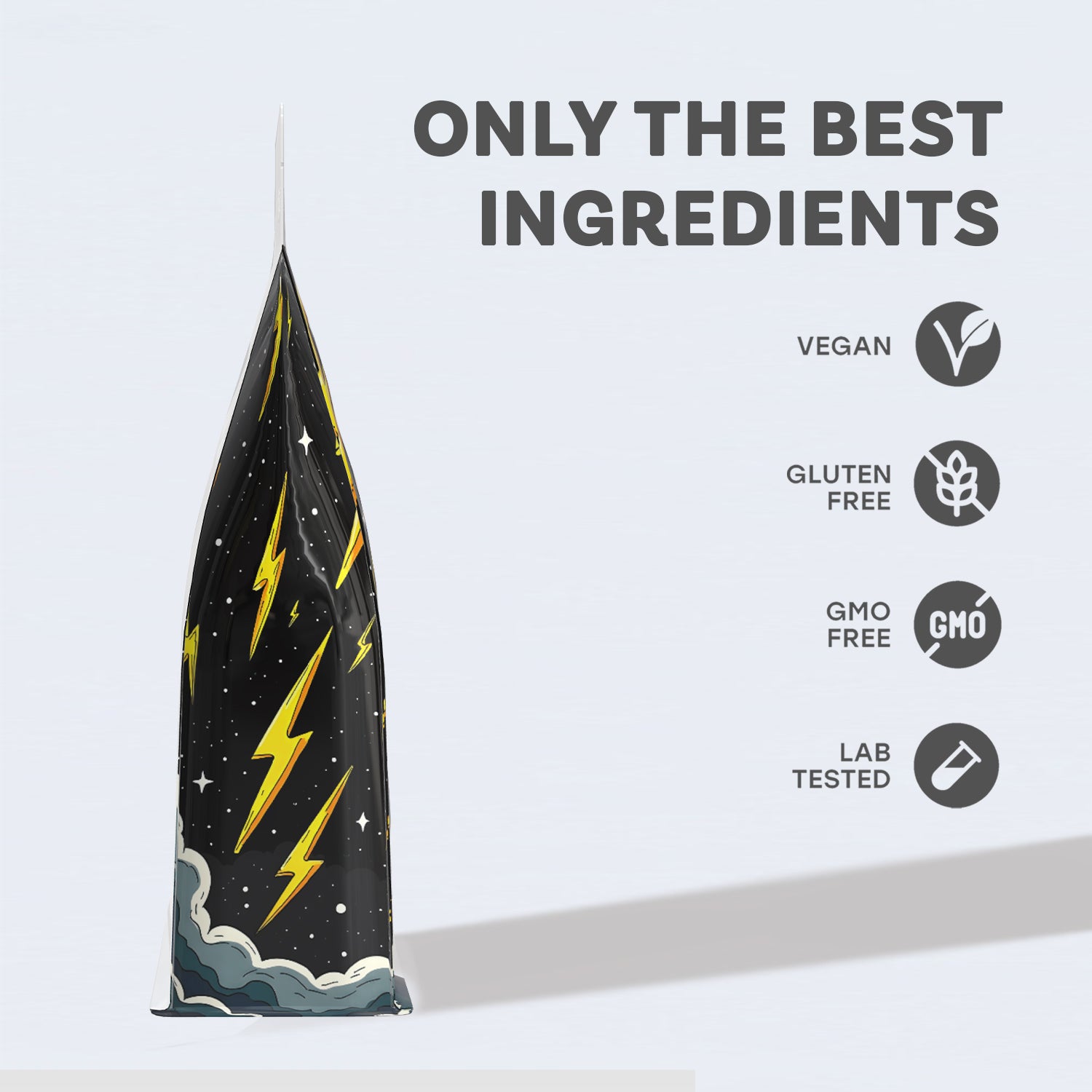 We use eco friendly flat bottom pouches for freshness and reduced waste.